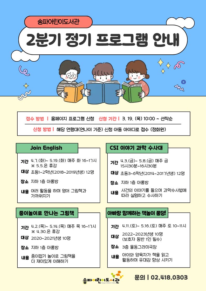 ○ 신 청 : 2026년 3월 19일(목) 오전 10시~ (홈페이지 선착순 접수, 참여 대상 아동 아이디로 접수)