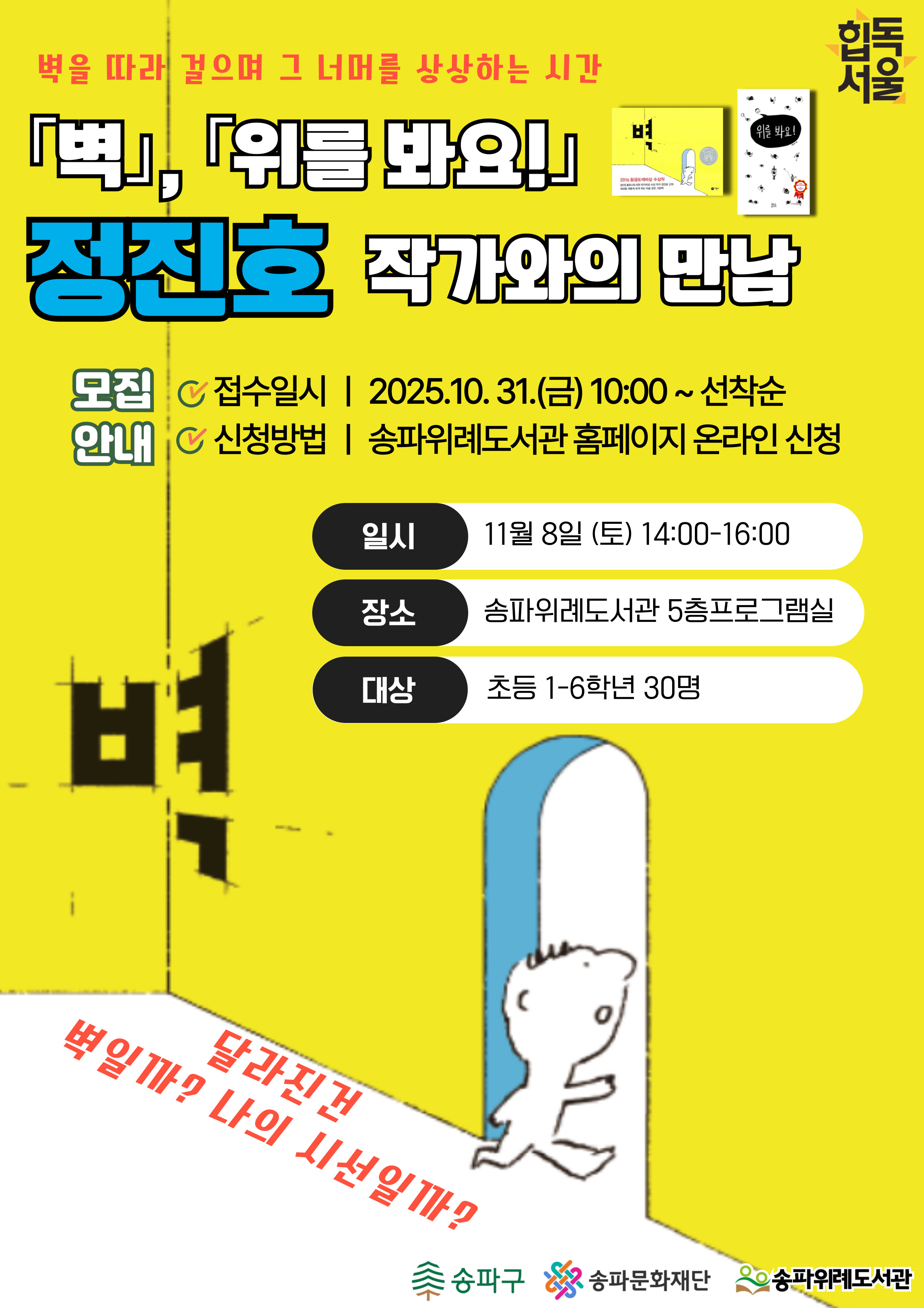 정진호 작가와의 만남은 초등학생 대상입니다.
