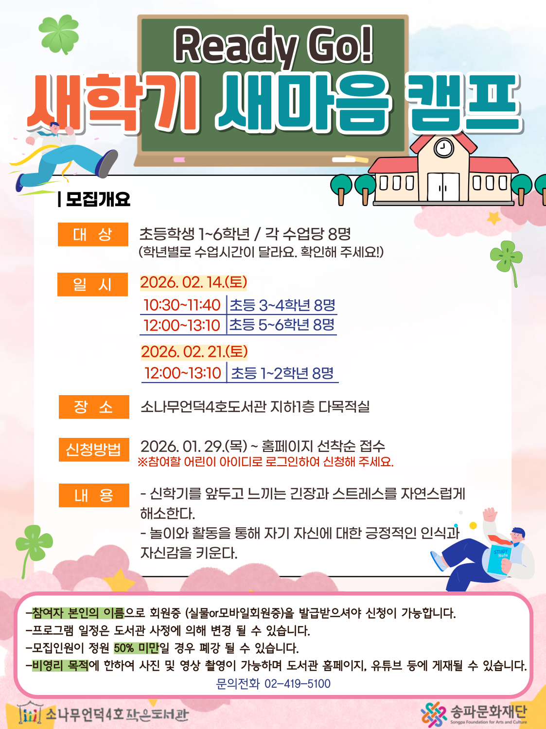 02. 14. 토요일 오전 10시 30분 ~ 11시 40분 초등 3~4학년 어린이 8명
